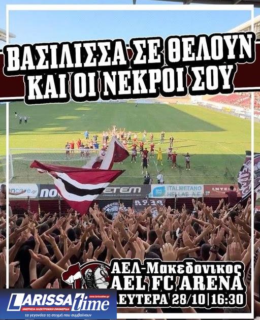 Με αφορμή την εντός έδρας αναμέτρηση για την Superleague 2 της ΑΕΛ με το Μακεδονικό που θα γίνει τη Δευτέρα (28/10, 16:30) στο AEL FC Arena οι οργανωμένοι οπαδοί των «βυσσινί» Θύρα 1 μέσα από τα social media έκαναν την παρακάτω ανακοίνωση μαζί με φωτογραφία.