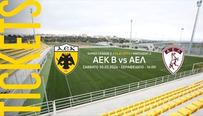 Η ΠΑΕ ΑΕΚ ενημερώνει ότι έχει τεθεί σε λειτουργία το ηλεκτρονικό εισιτήριο για τον αγώνα ΑΕΚ B – ΑΕ ΛΑΡΙΣΑΣ για τη 2η αγωνιστική των Play Offs της Super League 2, το Σάββατο 30/03 στις 14:00 Σεραφείδειο.