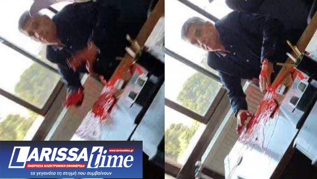 Το κείμενο έχει την υπογραφή «Αγωνιστές/-ριες» και όπως αναφέρεται η «παρέμβαση με μπογιές» είχε στόχο την μη διεξαγωγή προγραμματισμένης του διάλεξης με αφορμή την εμπλοκή του πρώην Περιφερειάρχη Θεσσαλίας στην υπόθεση του δυστυχήματος των Τεμπών.