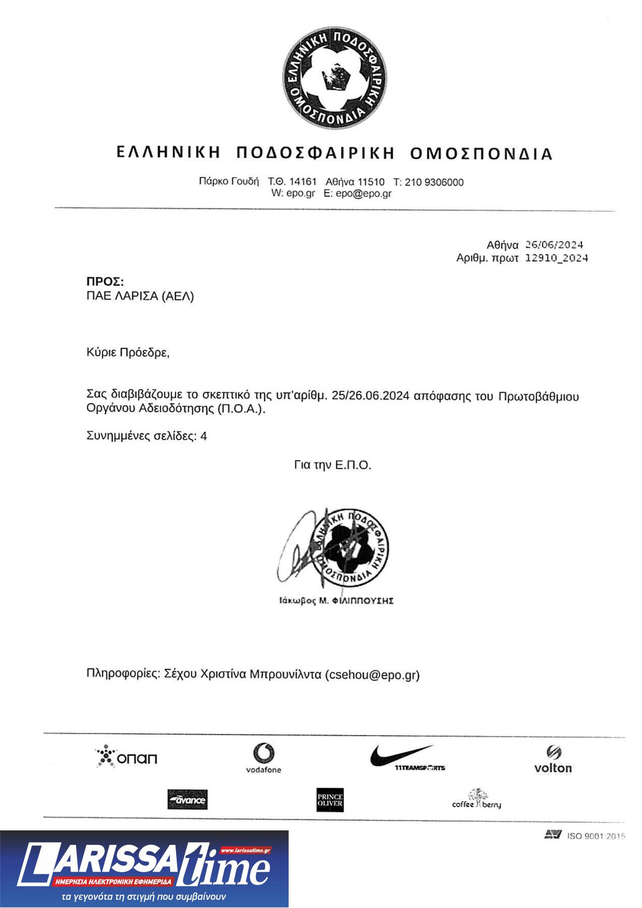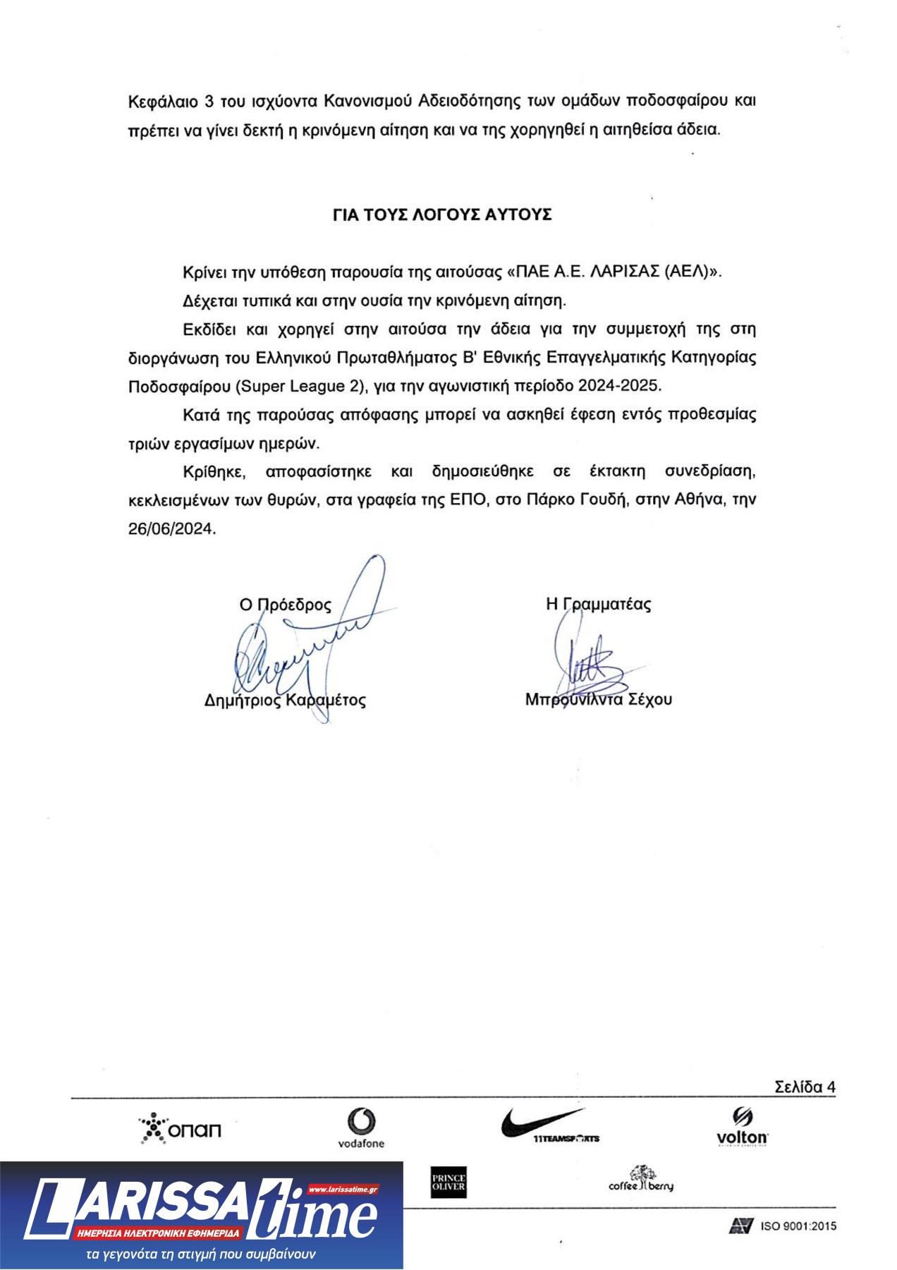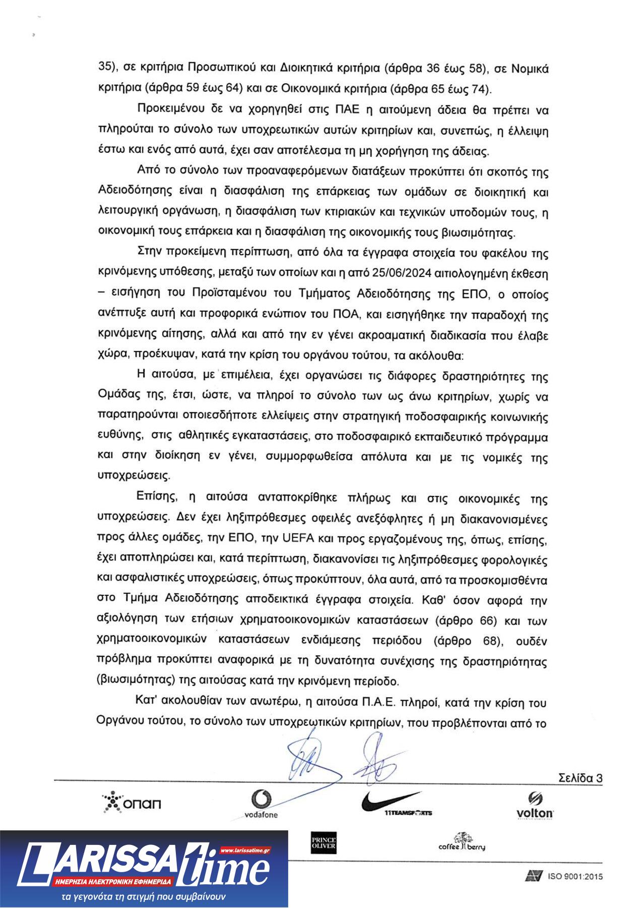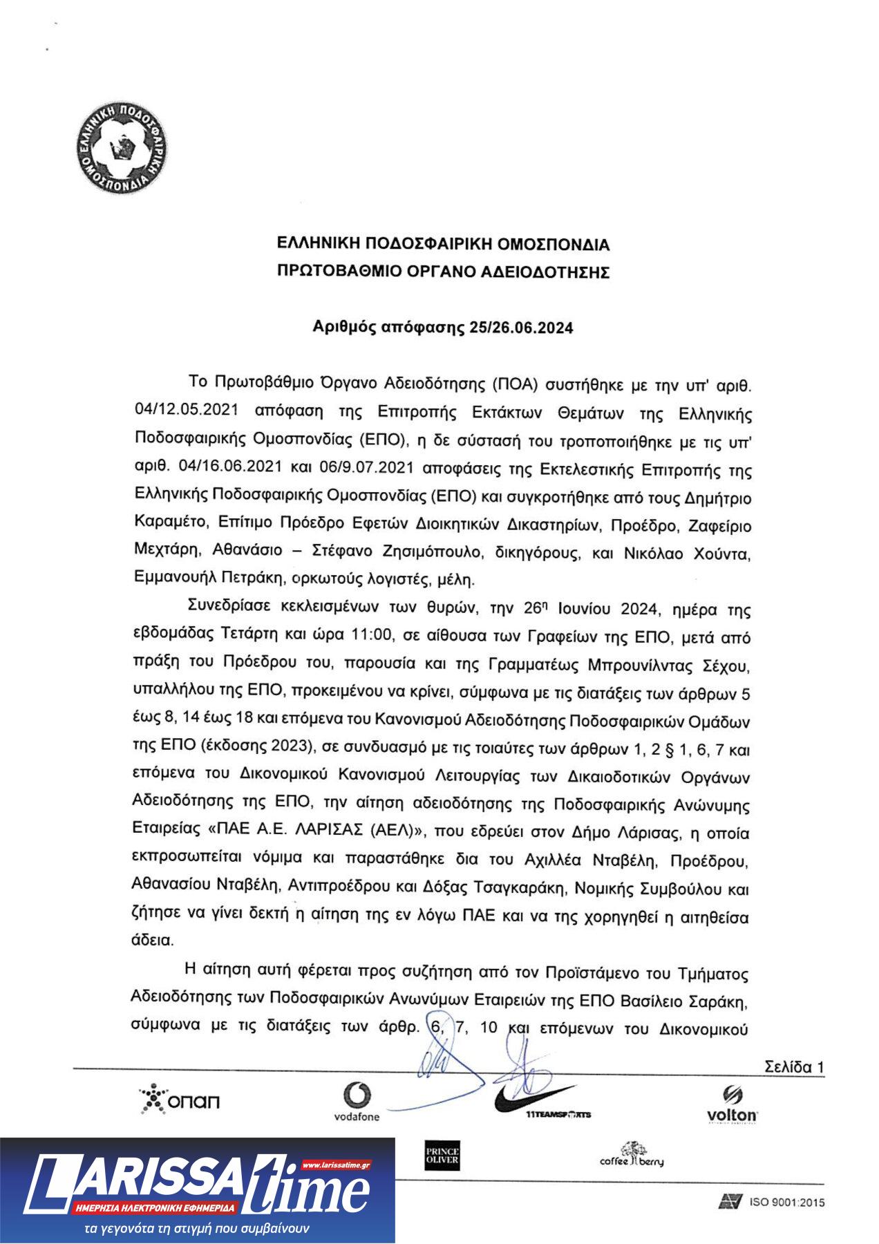 Αναλυτικά η απόφαση για την ΠΑΕ ΑΕΛ