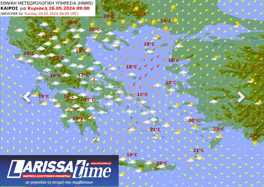 Ανεμοι: Μεταβλητοί 3 με 4 και στα ανατολικά βορειοανατολικοί 4 με 5 μποφόρ.