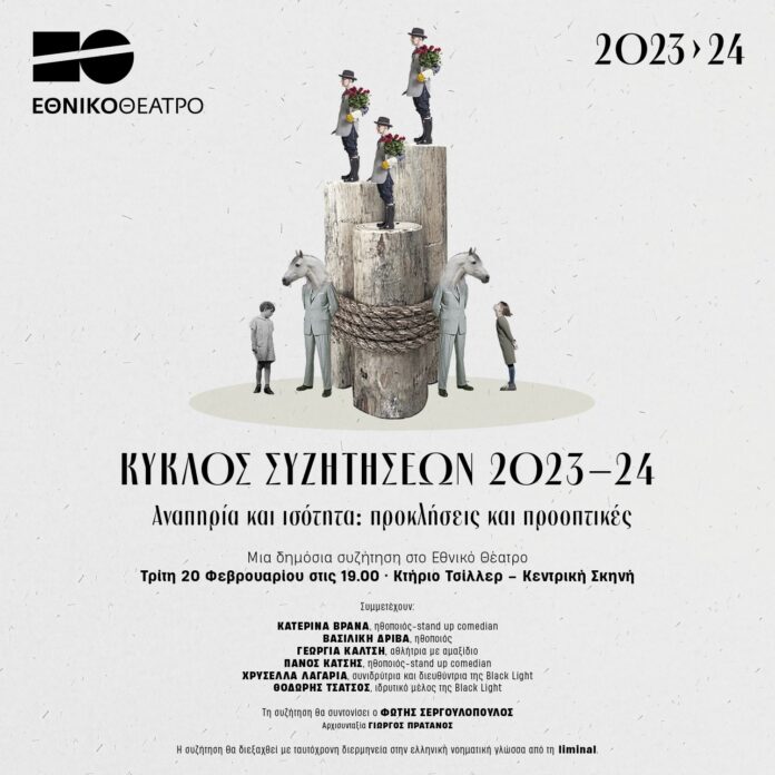 Με τη δημόσια συζήτηση με θέμα: «Αναπηρία και ισότητα: προκλήσεις και προοπτικές» συνεχίζεται την Τρίτη 20 Φεβρουαρίου στις 19.00 ο κύκλος συζητήσεων που άνοιξε το Εθνικό Θέατρο πάνω σε φλέγοντα ζητήματα που απασχολούν την κοινωνία. Η συζήτηση θα πραγματοποιηθεί στην Κεντρική Σκηνή, στο κτήριο Τσίλλερ.