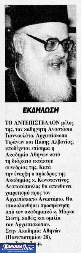 Krishti u Νgjαll – Χριστός Ανέστη – αυτές ήταν οι πρώτες λέξεις που έμαθε στο Αλβανικά ο 62χρονος τότε Προκαθήμενος. Και Ανέστη η Εκκλησία της Αλβανίας και οι Ναοί που μετατράπηκαν σε μηχανουργεία, γήπεδα, και στο Δέλβινο που ένα τεράστιο δέντρο είχε μεγαλώσει στην θέση του εντελώς κατεστραμμένου Ναού σήμερα υπάρχουν δεκάδες Εκκλησίες, εκατοντάδες ιερείς που υπηρετούν την Ορθοδοξία, Θεολογικές Σχολές, σχολεία, Πανεπιστήμια, Ιατρικά Κέντρα, Υδροηλεκτρικά εργοστάσια αλλά και νεκροταφεία που έφτιαξε ο πρώην Εφεδρος Αξιωματικός του Ελληνικού Στρατού για τους έλληνες στρατιώτες που έπεσαν στο Αλβανικό Μέτωπο και χιλιάδες ορθόδοξοι πιστοί αλλά και αλλόθρησκοι που σέβονται και τιμούν τον παπα Αναστάση.