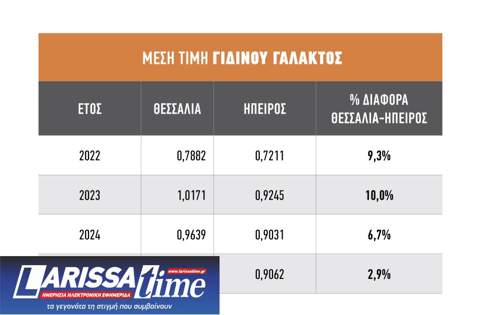 της Θεσσαλίας και Ηπείρου, µε το θεσσαλικό γάλα να πληρώνεται σταθερά καλύτερα εδώ και χρόνια.