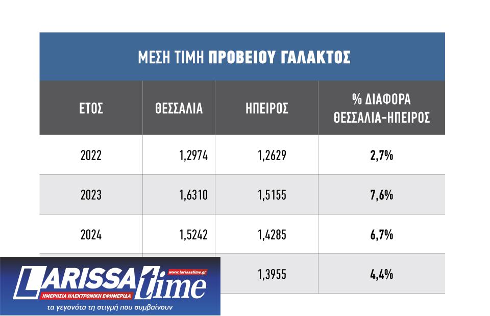 Μια διαφορά που κυµαίνεται από 2,7% έως 10%, παρουσιάζουν οι τιµές στο πρόβειο και γίδινο γάλα που εισκοµίζεται από τις ζώνες της Θεσσαλίας και Ηπείρου, µε το θεσσαλικό γάλα να πληρώνεται σταθερά καλύτερα εδώ και χρόνια.