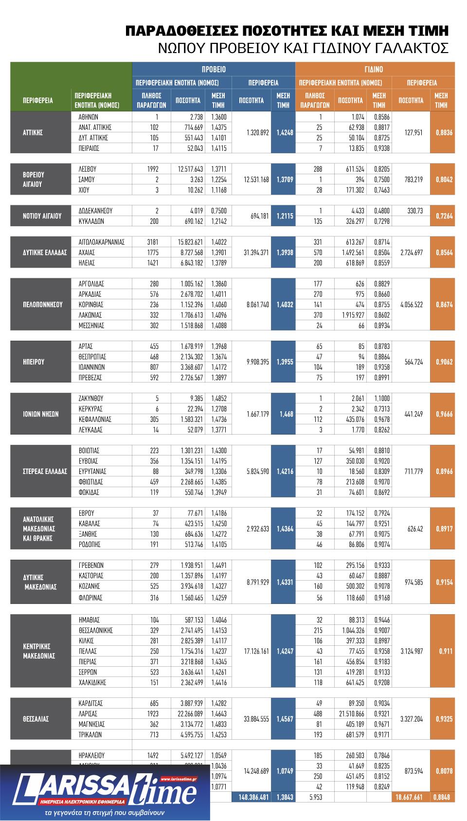 ∆εν είναι τυχαίο το γεγονός ότι εκεί όπου δραστηριοποιούνται εντονότερα τα Ελληνικά Γαλακτοκοµεία, ανθούν και οι µεγάλες κτηνοτροφικές µονάδες της αιγοπροβατοτροφίας. Κάπως έτσι, στη Θεσσαλία για παράδειγµα, το γάλα δείχνει να πληρώνεται καλύτερα απ’ ότι στην Ήπειρο (βλέπε σχετικό πίνακα), όπου ο κύριος όγκος των κτηνοτροφικών µονάδων είναι ακόµα ελεύθερης βοσκής και φυσικά µικρότερου µεγέθους.