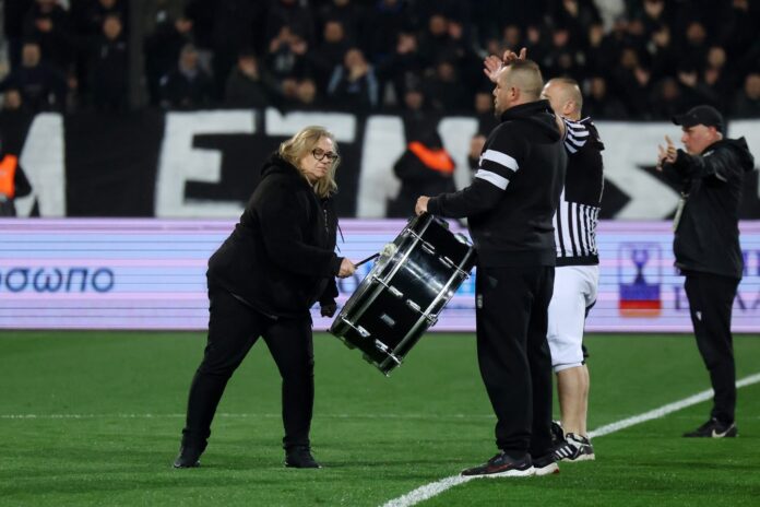 Η γυναίκα αυτή δεν ήταν τυχαία. Ήταν η μητέρα του Χρήστου Ζέζιου, ενός από τα επτά παιδιά του ΠΑΟΚ που έχασαν τη ζωή τους στο πολύνεκρο τροχαίο στη Ρουμανία, στις 27 Ιανουαρίου. Με το χτύπημα του τυμπάνου, ανέλαβε να κρατήσει ζωντανό το τελετουργικό που εδώ και χρόνια προηγείται κάθε αγώνα του «Δικεφάλου του Βορρά» στην Τούμπα — μια ιεροτελεστία που σηματοδοτεί την είσοδο της ομάδας και δίνει το σύνθημα σε όλο το γήπεδο να βροντοφωνάξει «ΠΑΟΚ».