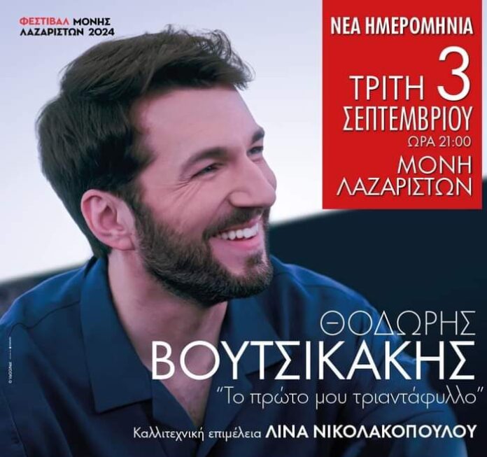 Λόγω προβλέψεων για άσχημες καιρικές συνθήκες, η συναυλία του Θοδωρή Βουτσικάκη που ήταν προγραμματισμένη για απόψε Τρίτη 2 Ιουλίου στο Φεστιβάλ Μονής Λαζαριστών.