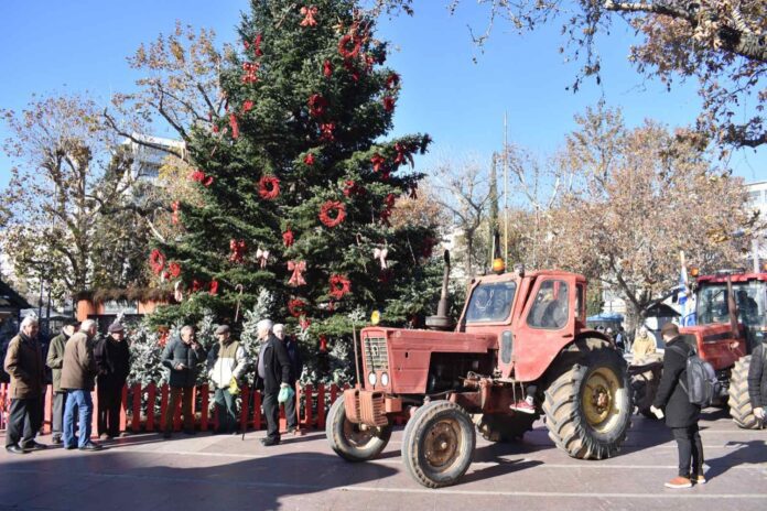 Από νωρίς το μεσημέρι της Δευτέρας (15/12), αγρότες από το μπλόκο της Νίκαιας βρέθηκαν στην Κεντρική Πλατεία Λάρισας, πραγματοποιώντας συγκέντρωση διαμαρτυρίας με την συμβολική παρουσία τρακτέρ, εκφράζοντας την αλληλεγγύη τους στους δύο συναδέλφους τους.