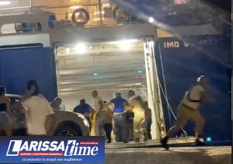 Στο βίντεο που κυκλοφορεί φαίνονται επιβάτες και πλήρωμα να προσπαθούν να σπρώξουν ένα ΙΧ για να μπει στο πλοίο το οποίο όμως κλυδωνίζεται λόγω των ισχυρών ανέμων.