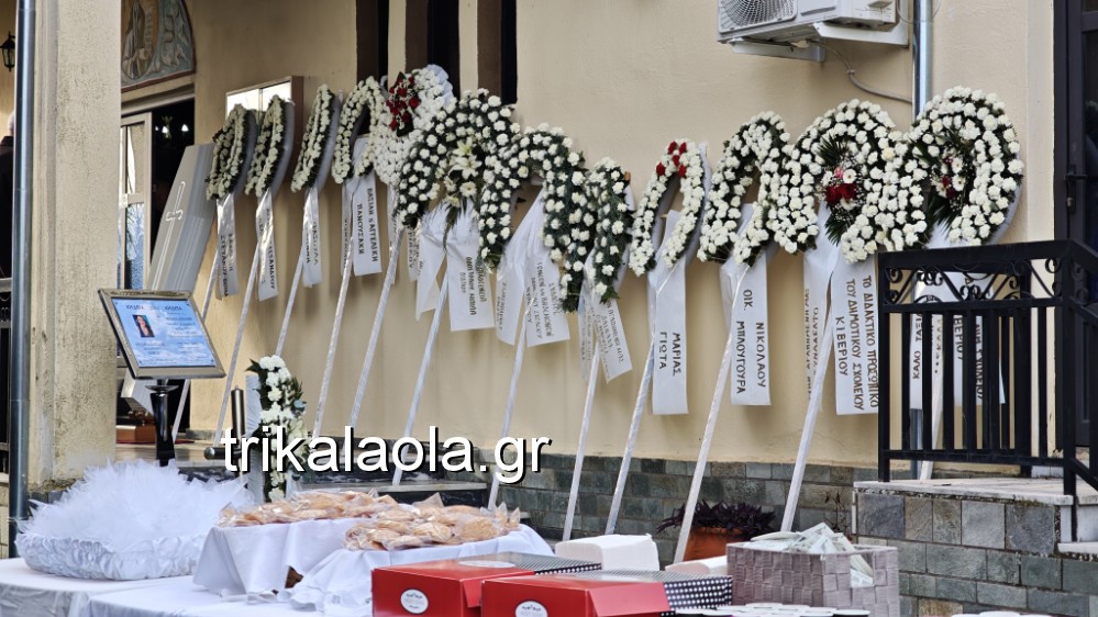 Η νεκρώσιμος ακολουθία έγινε στον ναό του Αγίου Ευθυμίου, παρουσία πλήθους, συγγενών, συγχωριανών, φίλων της οικογένειας και συνάδελφων της Θεοδώρας που ήρθαν από μακριά για να συλλυπηθούν του οικείους της.