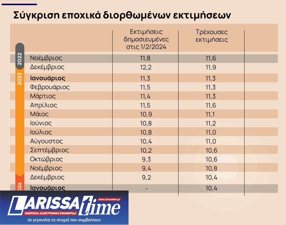 Έτσι, οι εκτιμήσεις του ποσοστού ανεργίας για την περίοδο Νοεμβρίου 2022 – Δεκεμβρίου 2023 αναθεωρούνται (σε σχέση με τις αντίστοιχες εκτιμήσεις της προηγούμενης Ανακοίνωσης) ως εξής: