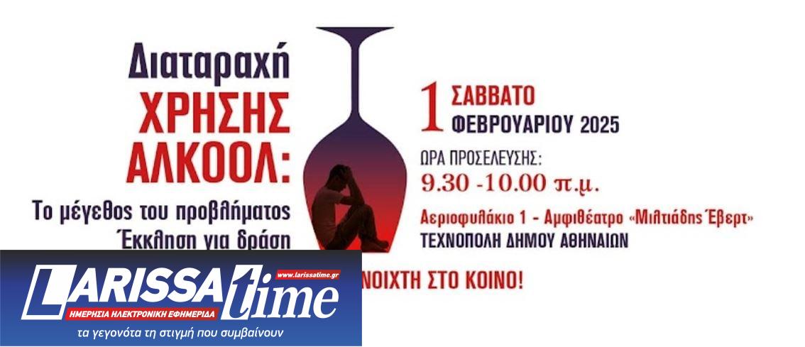 Ανοιχτή εκδήλωση για το κοινό με θέμα «Διαταραχή χρήσης αλκοόλ: Το μέγεθος του προβλήματος – Έκκληση για δράση» θα πραγματοποιηθεί το Σάββατο, 1 Φεβρουαρίου 2025, στο Αεριοφυλάκιο 1 – Αμφιθέατρο «Μιλτιάδης Έβερτ», στην Τεχνόπολη του Δήμου Αθηναίων.
