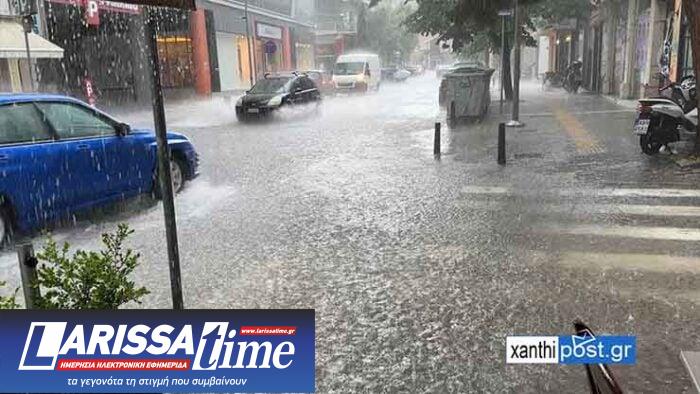 Η έντονη βροχόπτωση σε συνδυασμό με τα βουλωμένα φρεάτια, γέμισαν τους δρόμους της πόλης με αρκετό νερό, με τη μετακίνηση των οχημάτων να γίνεται μετ’ εμποδίων.