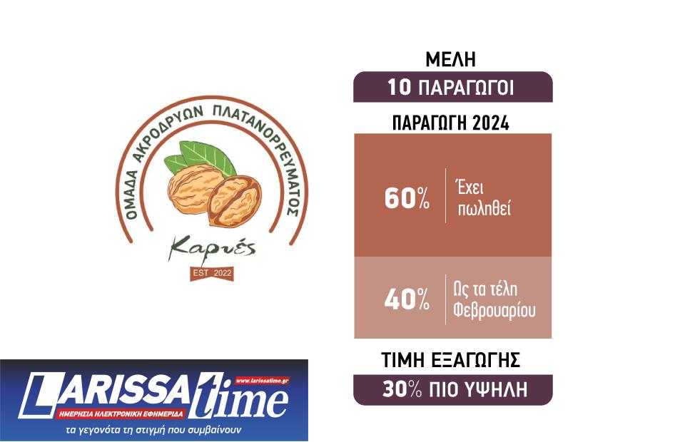 Από την παραγωγή του 2024 δε, ήδη έχει πωληθεί το 60% και το άλλο 40% αναµένεται να φύγει έως το τέλος Φεβρουαρίου, µε την τιµή για το προϊόν που εξάγεται να είναι σχεδόν 30% πιο υψηλή από ό,τι ισχύει στην Ελλάδα για τη χονδρική σε ψίχα σε µέγεθος 1/2 και 1/4.