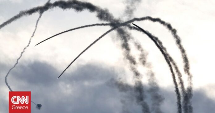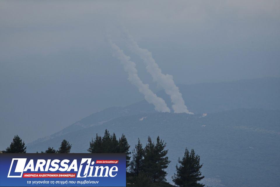 Ίχνη πυραύλων που εκτοξεύτηκαν προς το Ισραήλ από τον νότιο Λίβανο.