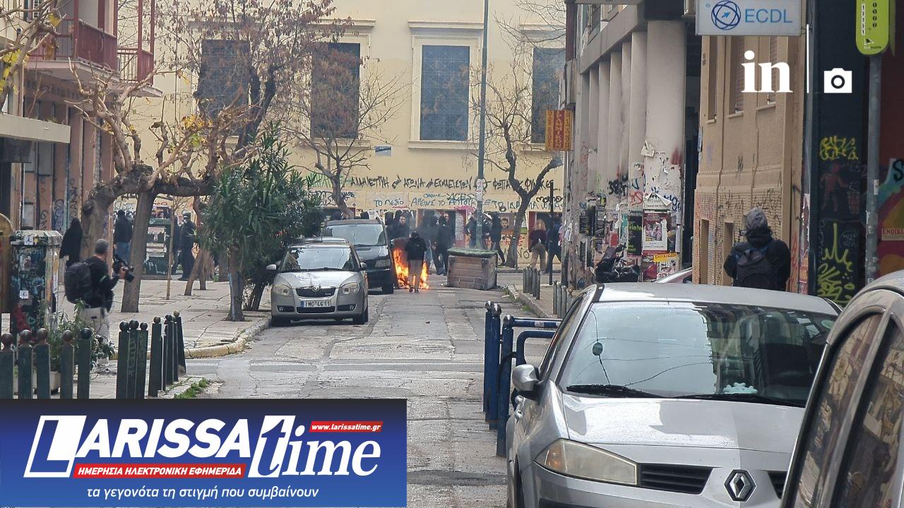 Μετά τα επεισόδια ομάδα ατόμων συγκεντρώθηκε γύρω από τον χώρο του Πολυτεχνείου έχοντας βάλει φωτιά σε κάδους.