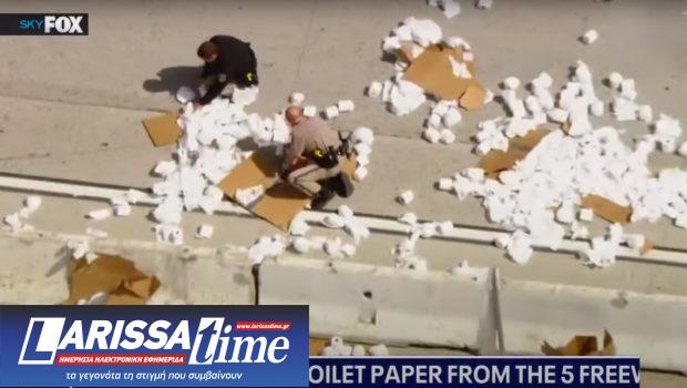 Απίστευτο σκηνικό εξελίχθηκε σε αυτοκινητόδρομο στην Καλιφόρνια, όταν «πλημμύρισε» από εκατοντάδες ρολά χαρτιού υγείας. Όταν έπεσαν από φορτηγό κούτες με χαρτιά υγείας δημιουργήθκε μποτιλιάρισμα αφού καλύφθηκαν από αυτά αρκετές λωρίδες.