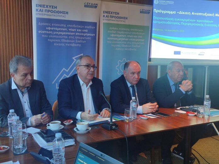 - 18 επενδυτικά σχέδια από μικρομεσαίες επιχειρήσεις, που έλαβαν έγκριση για χρηματοδότηση, συνολικού επιλέξιμου προϋπολογισμού 72,7 εκατ. ευρώ, εκ των οποίων 48,8 εκατ. θα είναι η επιχορήγηση που θα δοθεί από το Πρόγραμμα της Δίκαιης Αναπτυξιακής Μετάβασης 2021-2027.