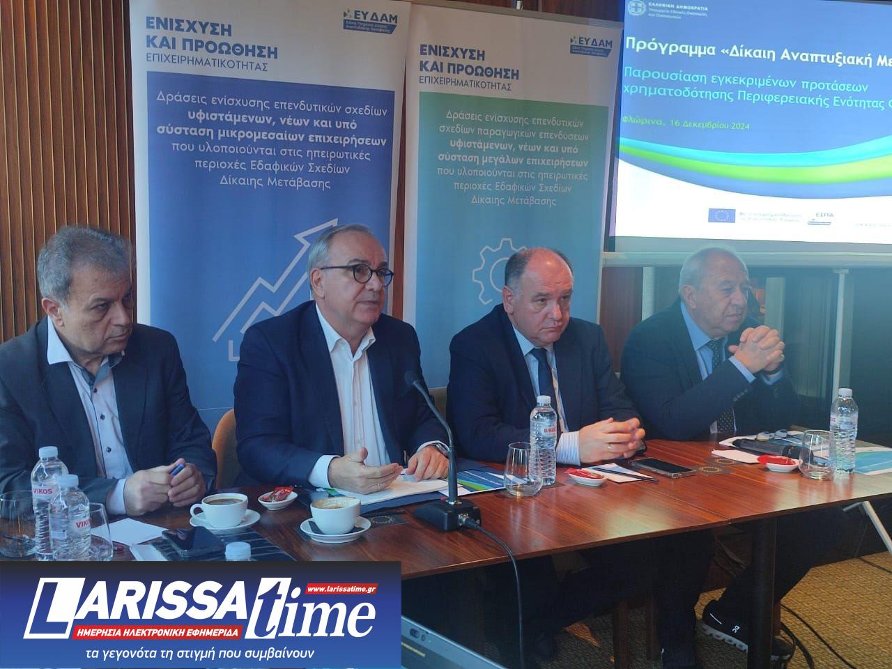 Ο Διοικητής της Ειδικής Υπηρεσίας Δίκαιης Αναπτυξιακής Μετάβασης, Πελοπίδας Καλλίρης, τόνισε: «Ανακοινώσαμε σήμερα την έγκριση 100 επενδυτικών σχεδίων, συνολικού προϋπολογισμού περίπου 144 εκατ. ευρώ, που αφορούν όλες τις κατηγορίες επιχειρήσεων στην περιοχή της Φλώρινας. Αυτά τα χρήματα θα αρχίσουν να διοχετεύονται στην πραγματική οικονομία της περιοχής εντός του 2025 αλλάζοντας την αναπτυξιακή της φυσιογνωμία προς πιο σύγχρονα πρότυπα και τομείς παραγωγής».