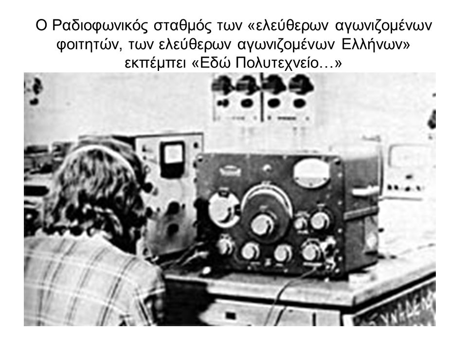«Νέοι και νέες συνέρρεαν ακατάπαυστα στον χώρο του Πολυτεχνείου για να συμμετάσχουν ενεργά σε μία εκδήλωση που απαιτούσε το τέλος της χούντας. Ο θρυλικός αυτοσχέδιος ραδιοφωνικός σταθμός έστελνε το μήνυμα της εξέγερσης απ’ άκρη σ’ άκρη του Λεκανοπεδίου.