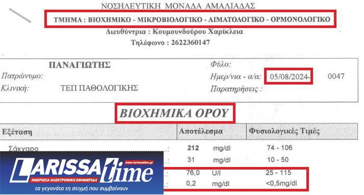 Σε αυτό τον φάκελο λοιπόν υπήρχαν κι οι επίμαχες αιματολογικές εξετάσεις του που υποτίθεται ότι απέρριψε να τις παραλάβει αρκετούς μήνες αργότερα η ήδη κάτοχος τους κυρία Αγγελική Τσιόλα. Το Αστυνομικό Τμήμα της Ήλιδας απέστειλε τον φάκελο αυτό αμέσως στην ΙΔ Υπηρεσία Πατρών.