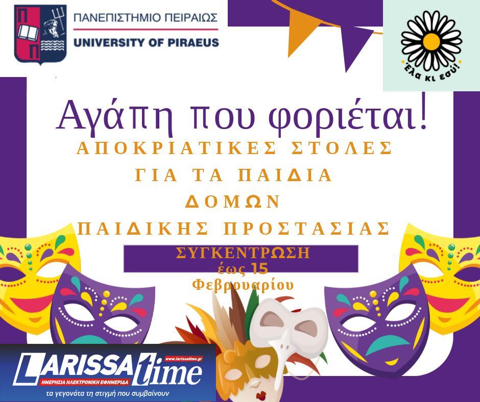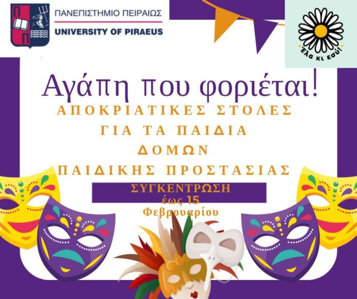 H Εθελοντική Ομάδα “Kerykes” του Πανεπιστημίου Πειραιώς και η Εθελοντική Ομάδα Δράσης «Έλα κι εσύ!» ενώνουν τις δυνάμεις τους σε μια ξεχωριστή αποκριάτικη δράση προσφοράς και αγάπης.