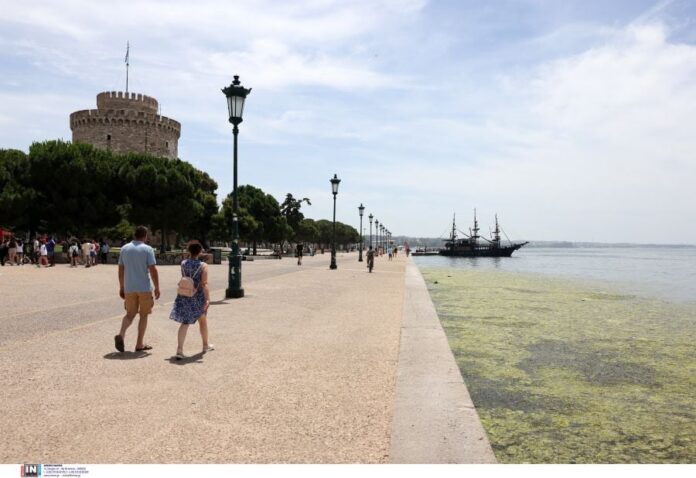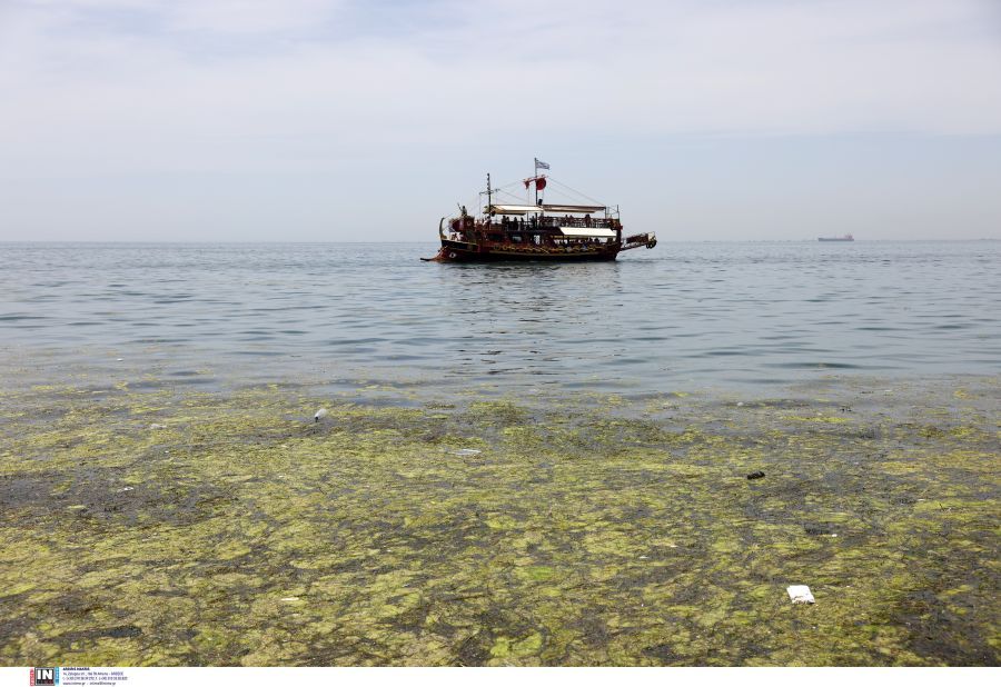 Μία αποκρουστική εικόνα αντικρίζουν περαστικοί στην παραλία της Θεσσαλονίκης, καθώς στην επιφάνεια του Θερμαϊκού σχηματίστηκε βλέννα από φυτοπλαγκτόν.