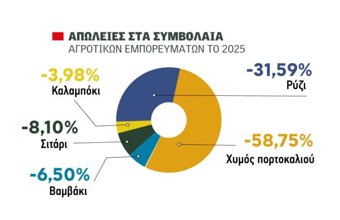 Συνολικά, η πτώση του δείκτη αποτυπώνει μια ευρεία αναπροσαρμογή των τιμών σε περιβάλλον υπερπροσφοράς, ασθενέστερου νομίσματος και αυξημένης γεωπολιτικής αστάθειας. Μέσα σε αυτό το περιβάλλον, η ευελιξία παραμένει κρίσιμο στοιχείο στρατηγικής και για το 2026, καθώς οι αρνητικές θέσεις στις αγορές παραμένουν σε υψηλά επίπεδα. Σε επιμέρους επίπεδο, τις μεγαλύτερες απώλειες για το 2025 σημείωσαν οι τιμές σε χυμό πορτοκαλιού (-58,75%), ρύζι (-31,59%), ζάχαρη (-22,07%) και ακολούθησαν οι τιμές σε σιτάρι (-8,07%), βαμβάκι (-6,04%) και καλαμπόκι (-3,98%). Σε αντίθετη, θετική πορεία, βρέθηκαν οι τιμές της σόγιας (+3,23%) και των βοοειδών (+21,09%), που ενισχύθηκαν, με τα τελευταία να διευρύνουν περαιτέρω τα κέρδη τους στην τριετία.