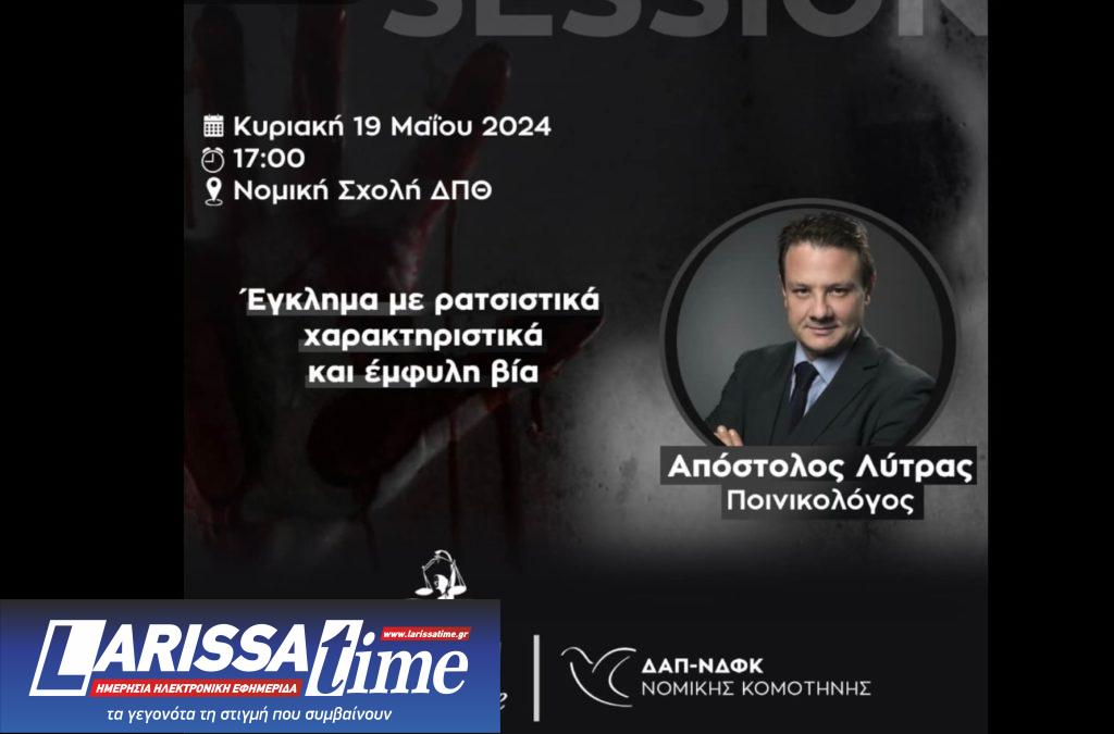 Το ίδιο έκανε και ως ομιλητής σε εκδήλωση της ΔΑΠ -ΝΔΦΚ στην Κομοτηνή, πριν ένα μήνα με θέμα «Έγκλημα με ρατσιστικά χαρακτηριστικά και έμφυλη βία».