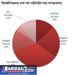 Το κλίμα για τα νοικοκυριά επιβαρύνεται και από τον προβληματισμό σε σχέση με την απασχόληση. Συγκεκριμένα, ο δείκτης πρόβλεψης για την εξέλιξη της ανεργίας τους προσεχείς 12 μήνες παρέμεινε σχεδόν αμετάβλητος τον Φεβρουάριο. Διαμρφώθηκε στις +13,2 μονάδες, από +13,9 τον Ιανουάριο. Το ποσοστό των νοικοκυριών που προέβλεψε μικρή ή αισθητή άνοδο της ανεργίας διατηρήθηκε στο 35%, με το 18% των ερωτηθέντων να αναμένει ελαφρά μείωσή της.