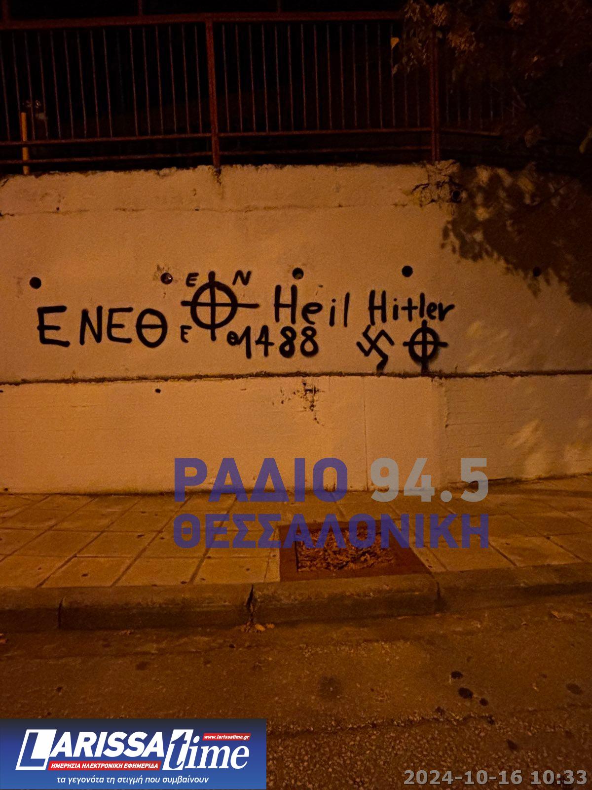 Η εν λόγω ομάδα υπέγραψε τα αποτρόπαια συνθήματα ως «Εθνικιστική Νεολαία Θεσσαλονίκης». Όπως ανέφερε στο Ράδιο Θεσσαλονίκη ο δήμαρχος Νεάπολης – Συκεών Σίμος Δανιηλίδης, περί τα μεσάνυχτα στις 15 Οκτωβρίου διαπιστώθηκε ότι άγνωστοι έγραψαν συνθήματα στο γυμνάσιο της περιοχής που βρίσκεται πίσω από το δημαρχείο.