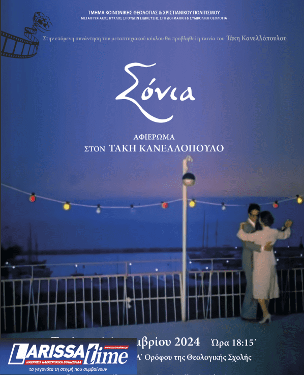 Η Κινηματογραφική Λέσχη του Τμήματος Κοινωνικής Θεολογίας και Χριστιανικού Πολιτισμού του ΑΠΘ διοργανώνει, την Τετάρτη 4 Δεκεμβρίου 2024 και ώρα 18.15, στην Αίθουσα Συνεδριάσεων του Α΄ ορόφου της Θεολογικής Σχολής του ΑΠΘ, ένα αφιέρωμα στον σκηνοθέτη Τάκη Κανελλόπουλο, με την προβολή της ταινίας «Σόνια».