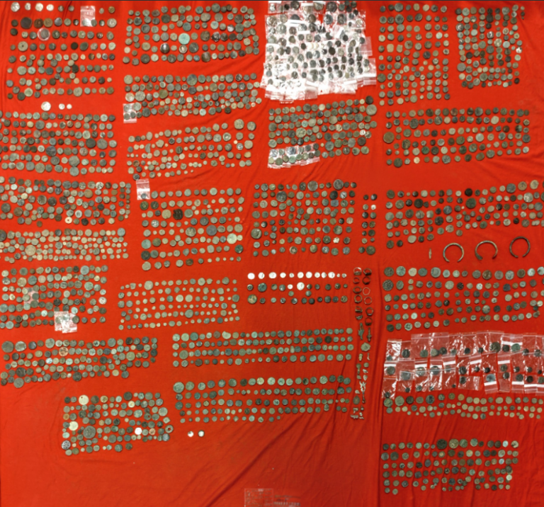 Μάλιστα, τα νομίσματα διαπιστώθηκε ότι προέρχονται από όλες τις εποχές νομισματικής κυκλοφορίας της αρχαιότητας, και ειδικότερα από την Κλασσική Εποχή (5ου-4ου αι. π. Χ.), το Μακεδονικό Βασίλειο (4ος -3ος αι. π. Χ.), τις ελληνικές πόλεις της Μακεδονίας, τους Ελληνιστικούς Χρόνους, την Ρωμαϊκή Εποχή της Δημοκρατίας, τους Ρωμαϊκούς Αυτοκρατορικούς Χρόνους, την Πρωτοβυζαντινή Εποχή, την Μεσοβυζαντινή Εποχή, την Ύστερη Βυζαντινή Περίοδο, την Εποχή της Μέσης Οθωμανοκρατίας και τον 17ο Ευρωπαϊκό αιώνα.