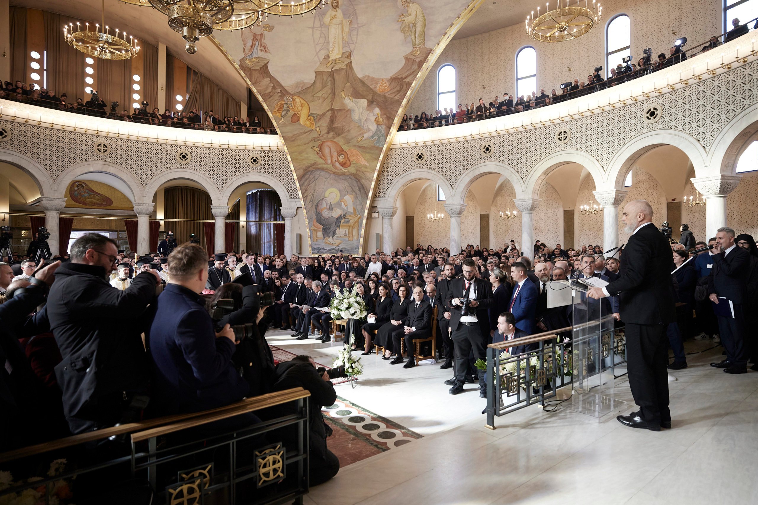 Ο πρωθυπουργός της Αλβανίας Έντι Ράμα, αποχαιρέτησε τον Μακαριστό Αρχιεπίσκοπο Αναστάσιο με έναν 20λεπτο επικήδειο, αποδίδοντας τα εύσημα στην προσωπικότητα του Ιεράρχη για το έργο και την προσφορά του.