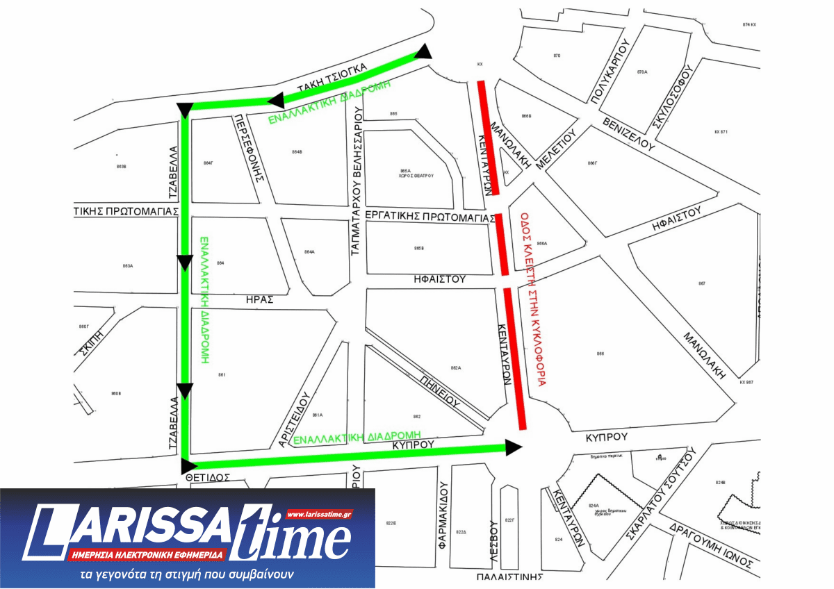 Με την έναρξη εργασιών στην οδό Κενταύρων, την ερχόμενη εβδομάδα, συνεχίζεται το έργο για τη διασύνδεση αρχαιολογικών-πολιτιστικών σημείων της Λάρισας. Σύμφωνα με τη σχετική ανακοίνωση του Τμήματος Οδοποιίας της Διεύθυνσης Τεχνικών Υπηρεσιών του Δήμου Λαρισαίων, το έργο περιλαμβάνει την πλήρη ανακατασκευή της οδού Κενταύρων, από τον κυκλικό κόμβο στη συμβολή των οδών Τσιόγκα – Γεωργιάδου έως τις οδούς Κύπρου-Ανθ. Γαζή-Πηνειού.