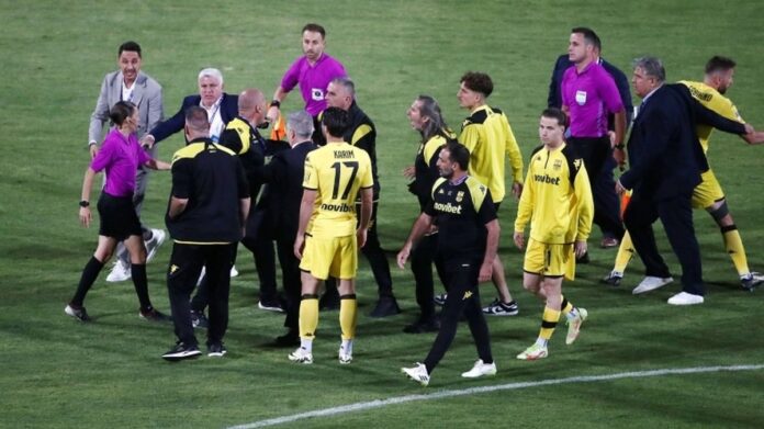 0ι «κίτρινοι» όμως, έχουν πολλά παράπονα από τις αποφάσεις της ρέφερι Στεφανί Φραπάρ και μεταξύ άλλων ο ισχυρός τους άνδρας Θοδωρής Καρυπίδης μπήκε μετά το φινάλε του αγώνα στον αγωνιστικό χώρο και της διαμαρτυρήθηκε έντονα.