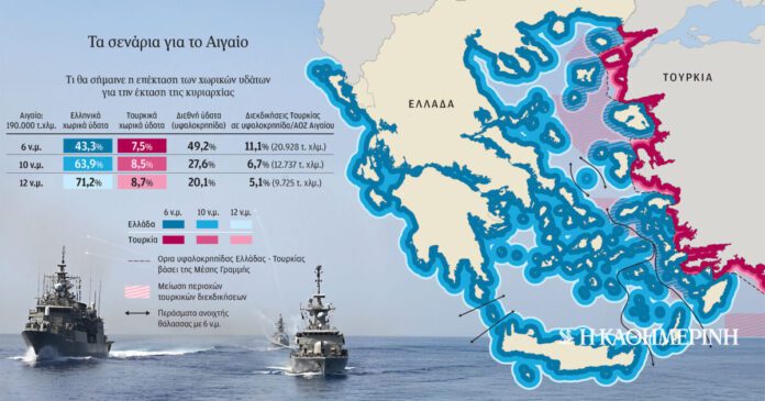 Η ένταση γύρω από το θέμα οφείλεται στο ότι μετά την επέκταση των ελληνικών χωρικών υδάτων στα 12 ν.μ., η θαλάσσια περιοχή του Αιγαίου υπό ελληνική κυριαρχία θα ανέλθει από το σημερινό 43% στο 72%. Η τουρκική περιοχή θα ανέλθει στο 8,7%, αυξανόμενη μόνον κατά 1,2%. Οι περισσότερες τουρκικές διεκδικήσεις στο Αιγαίο είτε θα τερματιστούν είτε θα καταστούν άνευ σημασίας. Θα πάψει να υφίσταται το σοβαρότατο πρόβλημα του διαφορετικού εύρους εναερίου χώρου (10 ν.μ.) και χωρικών υδάτων (6 ν.μ.). Η περιοχή της υφαλοκρηπίδας του Αιγαίου προς οριοθέτηση θα περιορισθεί από 21.000 τ. χλμ. που διεκδικεί σήμερα η Τουρκία, σε 9.700 τ. χλμ., οπότε η οριοθέτηση θα καταστεί περιορισμένης σημασίας.