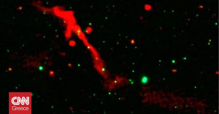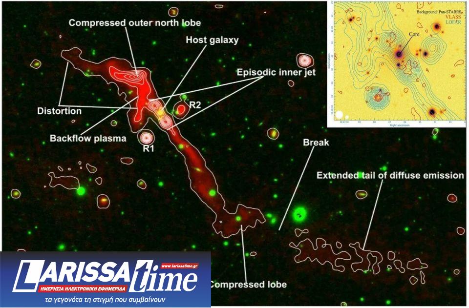 Η μαύρη τρύπα βρίσκεται στο κέντρο ενός γιγάντιου γαλαξία, ο οποίος εκπέμπει εξαιρετικά ισχυρά ραδιοκύματα. Μια νέα ανάλυση αυτών των ραδιοεκπομπών δείχνει ότι η μαύρη τρύπα στο παρελθόν εκτόξευε τεράστιους πίδακες πλάσματος, οι οποίοι εκτείνονταν για εκατοντάδες χιλιάδες έτη φωτός στο διάστημα, μέχρι κάποια στιγμή να σταματήσει απότομα. Σήμερα όμως είναι και πάλι ενεργοί, αλληλεπιδρώντας με πολύπλοκους και χαοτικούς τρόπους με το υπερθερμασμένο αέριο που τους περιβάλλει, αναφέρει το LiveScience.