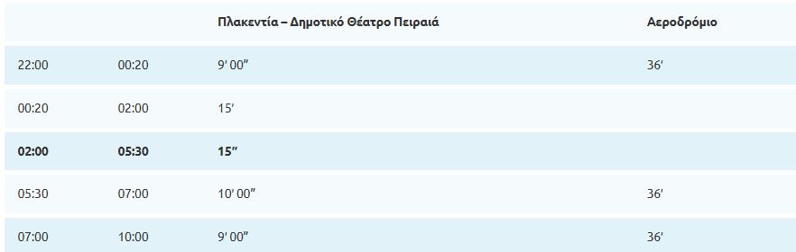 Συχνότητες διέλευσης γραμμής 3 του Μετρό από 22:00 έως 10:00