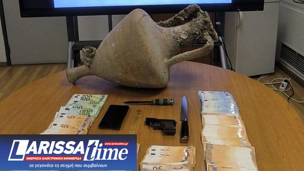 Ο κατηγορούμενος ακινητοποιήθηκε και συνελήφθη, ενώ σε σωματική έρευνα, καθώς και σε έρευνα εντός του οχήματος, βρέθηκαν και κατασχέθηκαν οξυπύθμενος αμφορέας ύψους 0,72μ. και με διάμετρο στομίου 0,13μ., με σιδερένια βάση, καθώς και κινητό τηλέφωνο. Επίσης, το όχημα κατασχέθηκε ως μέσο αποθήκευσης και μεταφοράς προς πώληση αρχαιοτήτων.