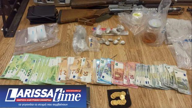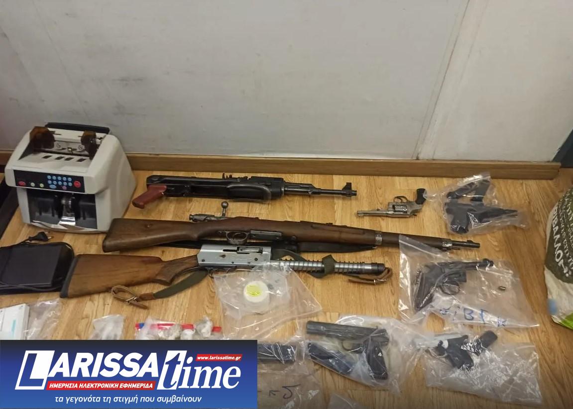 Κατά την αστυνομική επιχείρηση κατασχέθηκαν μεταξύ άλλων βαρύς οπλισμός και ποσότητες ναρκωτικών