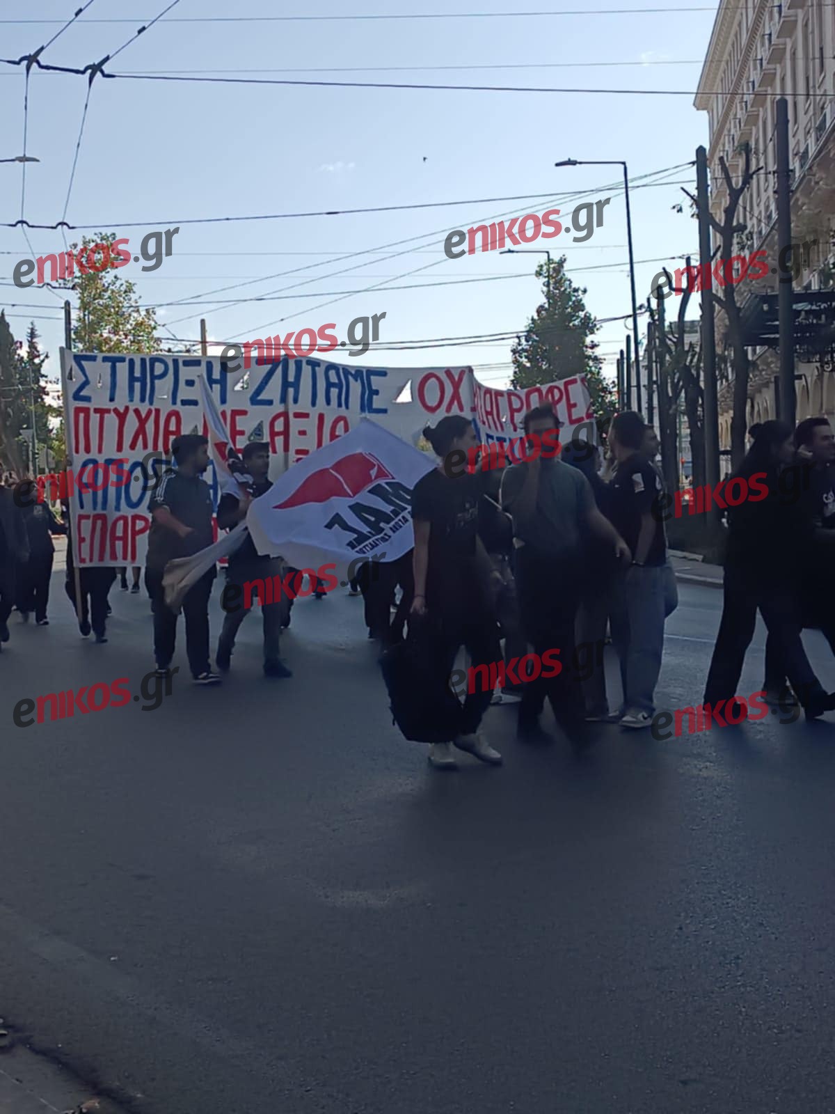 Μαζί τους, φοιτητές, οι οποίοι αντιδρούν, μεταξύ άλλων, στην ίδρυση και λειτουργία των μη κρατικών πανεπιστημίων και στις διαγραφές των «αιώνιων» φοιτητών από τα μητρώα των ΑΕΙ, σύμφωνα με πληροφορίες του ΑΠΕ-ΜΠΕ.