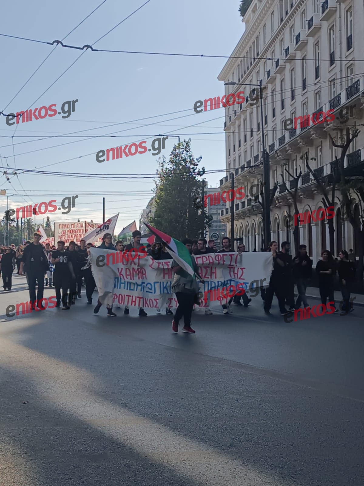 Μαζί τους, φοιτητές, οι οποίοι αντιδρούν, μεταξύ άλλων, στην ίδρυση και λειτουργία των μη κρατικών πανεπιστημίων και στις διαγραφές των «αιώνιων» φοιτητών από τα μητρώα των ΑΕΙ, σύμφωνα με πληροφορίες του ΑΠΕ-ΜΠΕ.
