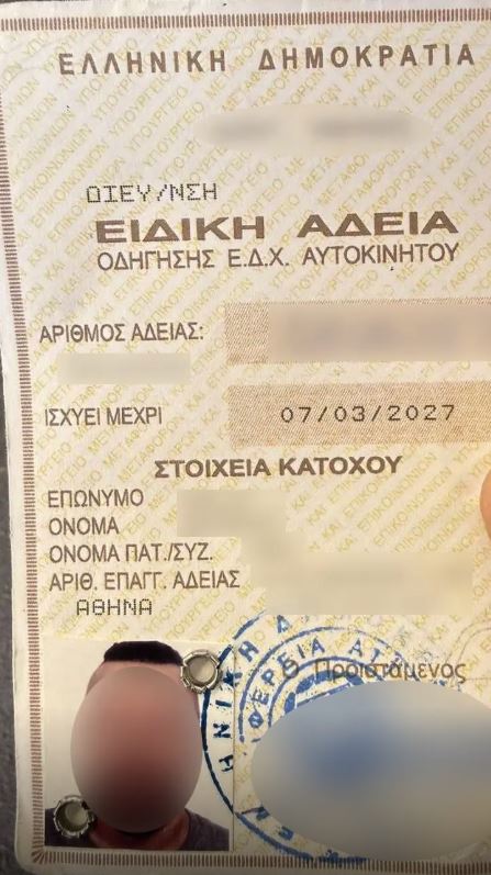 Στη δεύτερη περίπτωση, ο 32χρονος κατελήφθη στο κέντρο της Αθήνας να παραβιάζει ερυθρό σηματοδότη και αφού ακινητοποιήθηκε, κατά τον έλεγχο που πραγματοποιήθηκε, επέδειξε στους αστυνομικούς, τόσο πλαστή ειδική άδεια οδήγησης ταξί, όσο και πλαστή άδεια ικανότητας οδήγησης και κατόπιν οδηγήθηκε στο Τμήμα Δίωξης και Εξιχνίασης Εγκλημάτων Συντάγματος, το οποίο επιλήφθηκε προανακριτικά για το αδίκημα της πλαστογραφίας.