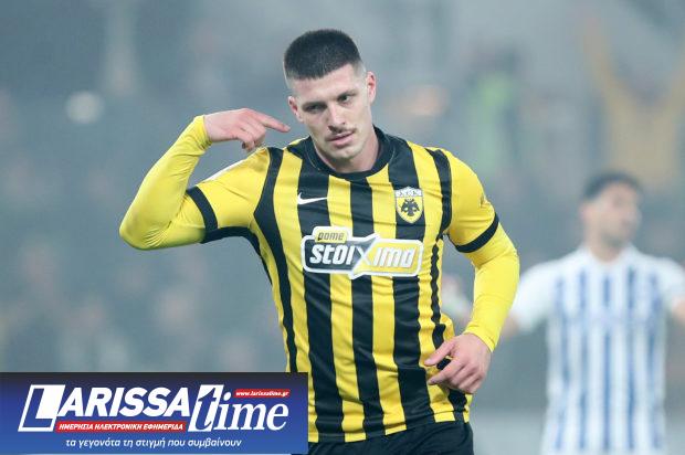 Ο Γιόβιτς ευστόχησε εκ νέου από την άσπρη βούλα, όπως είχε κάνει δις την προηγούμενη αγωνιστική στο ντέρμπι με τον Παναθηναϊκό.