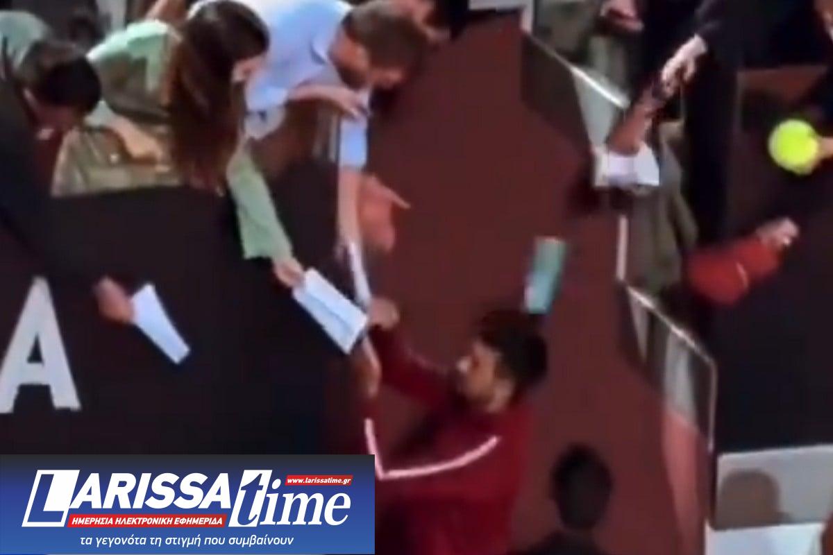 Ο νικηφόρος αγώνας του Νόβακ Τζόκοβιτς στη Ρώμη δεν είχε καλή κατάληξη για τον παγκόσμιο πρωταθλητή του τένις. Κι αυτό γιατί ενώ υπέγραφε αυτόγραφα καθώς αποχωρούσε για τα αποδυτήρια, ένα παγούρι «προσγειώθηκε» στο κεφάλι του.