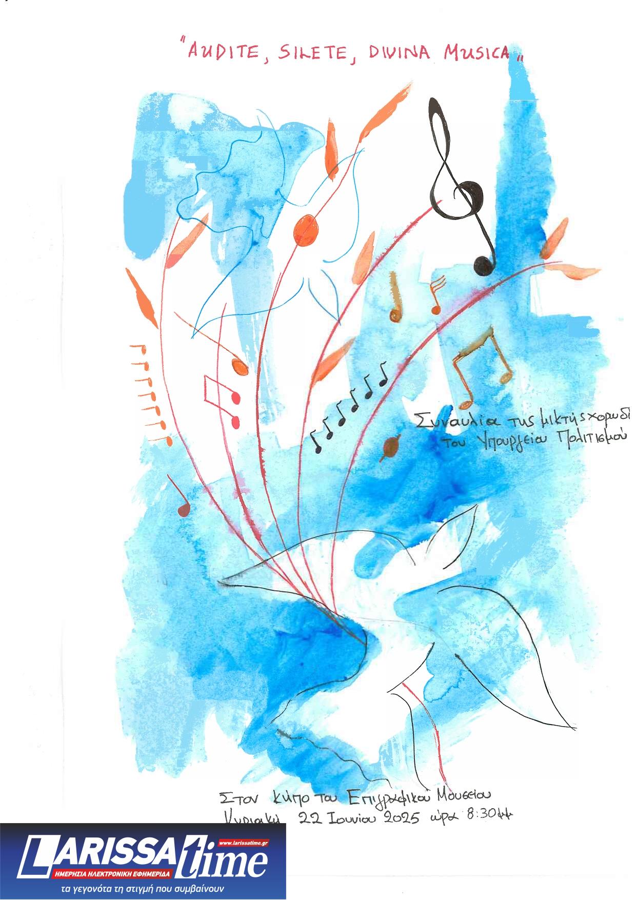 Την Κυριακή 22 Ιουνίου, στις 20:30, θα πραγματοποιηθεί η συναυλία της μικτής χορωδίας του Υπουργείου Πολιτισμού, «AUDITE, SILETE, DIVINA MUSICA», στον κήπο του Επιγραφικού Μουσείου