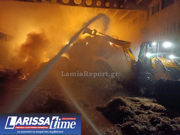 Στο σημείο έσπευσαν 12 πυροσβεστικά οχήματα και μία Ομάδα ΕΜΟΔΕ, που έδωσαν μάχη με τις φλόγες, καθώς καταστράφηκαν περίπου 2.500 μπάλες τριφυλλιού, βρώμης και κριθαριού.