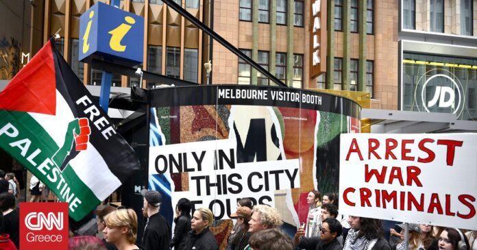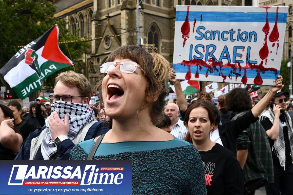 Χιλιάδες άνθρωποι βγήκαν στους δρόμους σήμερα Δευτέρα 9/2 σε όλη την Αυστραλία για να διαμαρτυρηθούν κατά της επίσκεψης του Ισραηλινού προέδρου Ισαάκ Χέρτζογκ, στο πλαίσιο της οποίας θα μεταβεί σε πολλές πόλεις με στόχο να εκφράσει την αλληλεγγύη του στην εβραϊκή κοινότητα της χώρας, μετά την πολύνεκρη επίθεση που σημειώθηκε τον Δεκέμβριο στην παραλία Μπόνταϊ.